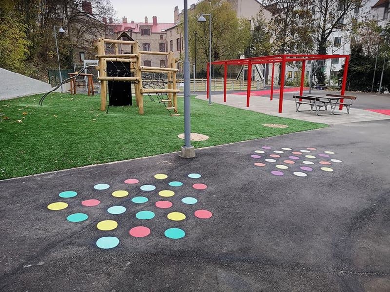 Våra unika produkter i Decomark Thermoplast är mycket populära på landets skolgårdar. Våra skickliga montörer hjälper dig med installation. Bara fantasin sätter gränser!