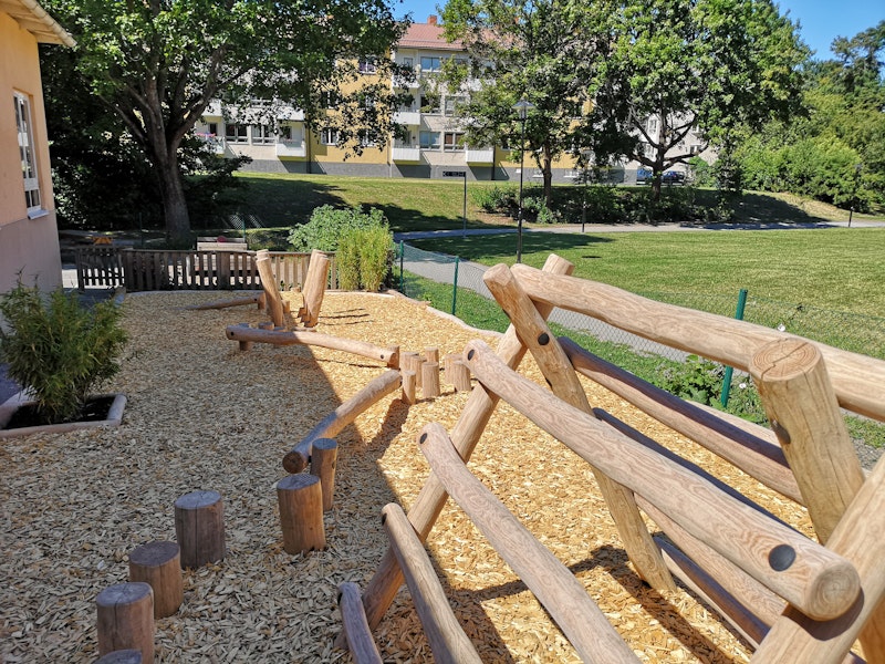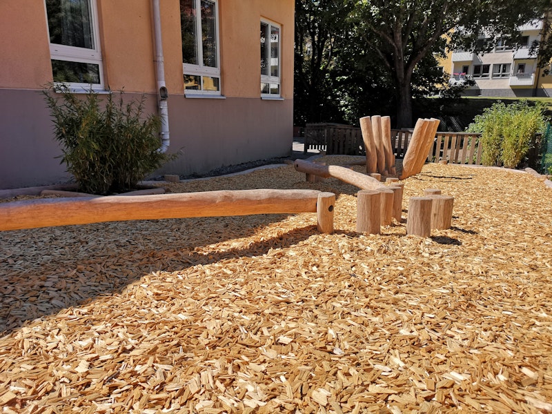 Förskolor är bland det roligaste vi vet att arbeta med, oavsett om det är helt nybyggda skolor eller äldre skolor i behov av att skapa en mera dynamisk och lekfull miljö. I det här aktuella exemplet så fick vi uppdrag att omskapa förskolans bakgård och nu har barnen tillgång till fin en balansbana med mjuk träflis. Snart är träden och buskarna på plats och barnens grillplats!