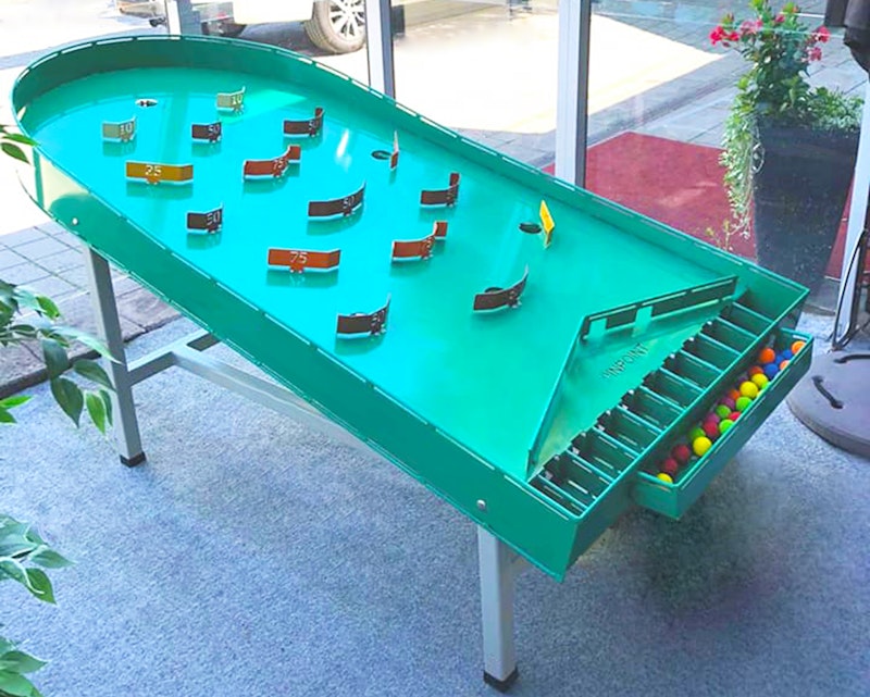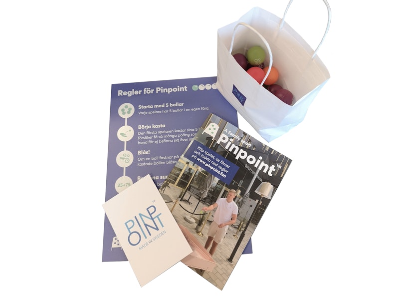 Äntligen ett spel för alla åldrar - Pinpoint! Fungerar inomhus och utomhus, på skolor, skolgårdar, fritidsverksamhet, ungdomsgårdar, campingplatser, minigofbanor, hotell, äldreboende med mera. Lätt att lära sig! Det medföljer 30 stycken av våra specialanpassade pinpointbollar! Alla som köper spelet har också möjlighet att vara med att anordna SM. Spelet visades för första gången på Elmia park i september 2019.