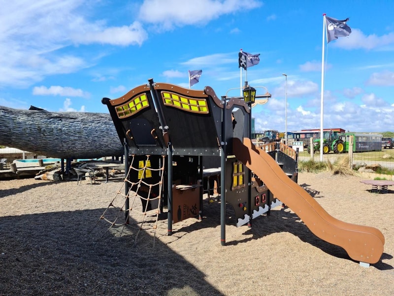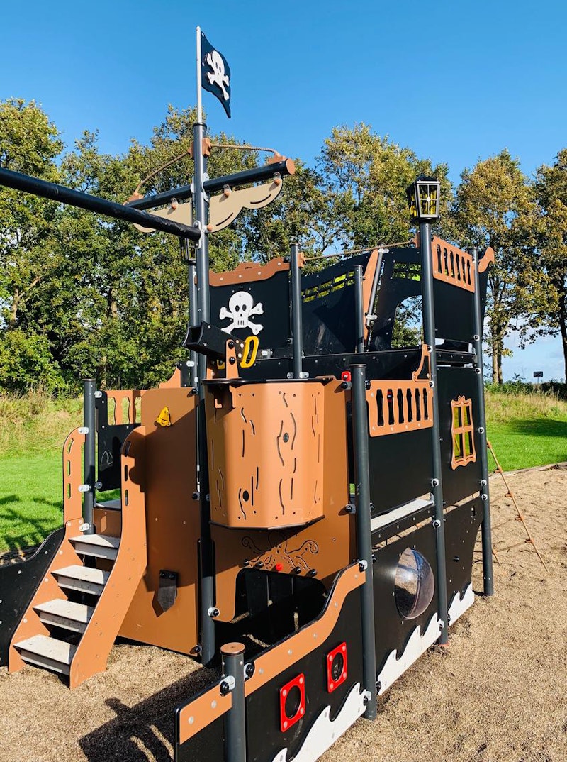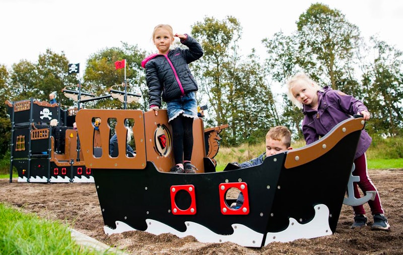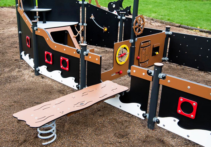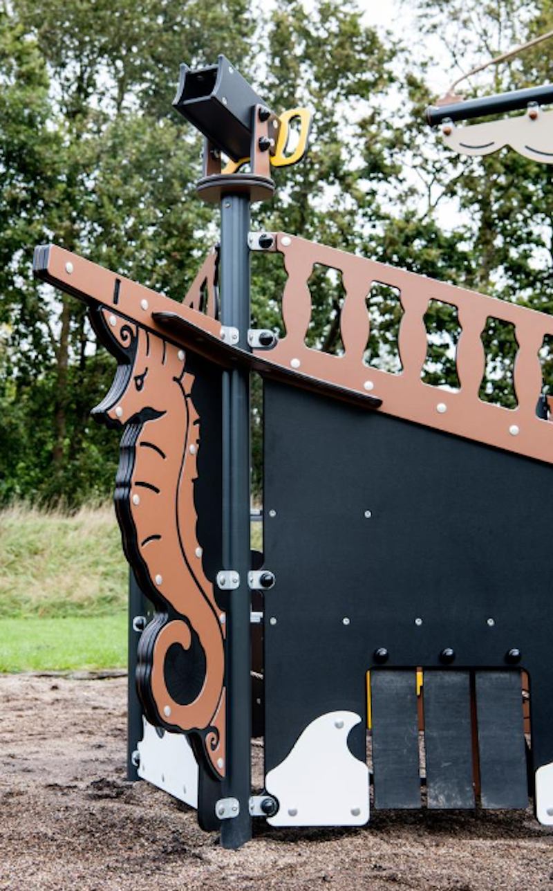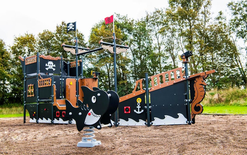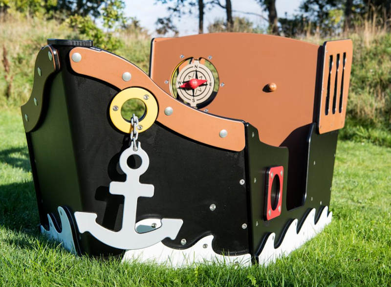 Ett piratskepp har siktats på en lekplats nära dig. Det är full kalabalik ombord! Diamantgömman är upptäckt. Någon måste ta ut en ny kurs mot nya äventyr! annars väntar plankan för förrädaren. Sällan har vi sett barnen försvinna så djupt in i leken som med vårt nya piratskepp! Grottor ska upptäckas. Krokodiler oskadliggöras. Hemligheter hållas! Vårt piratskepp är uppdelat i 4 olika lekzoner - förskepp. mittskepp, akterskepp, kabin - med lek för alla åldrar!