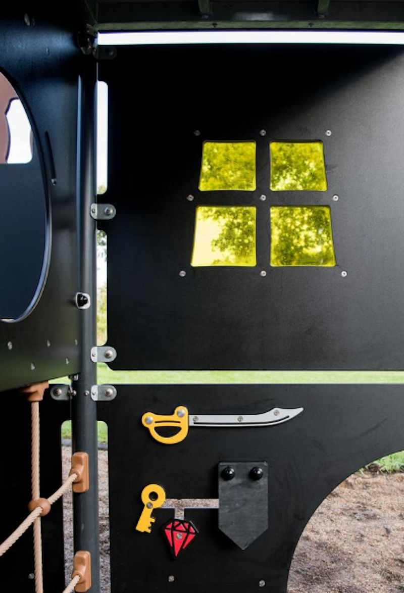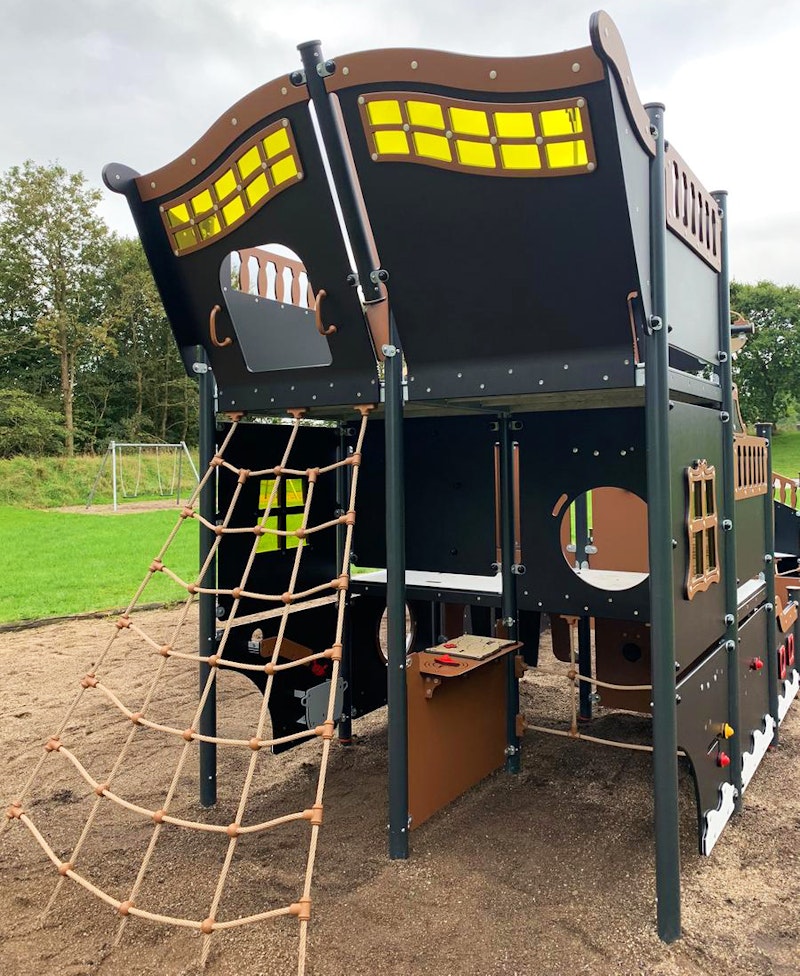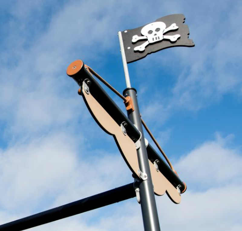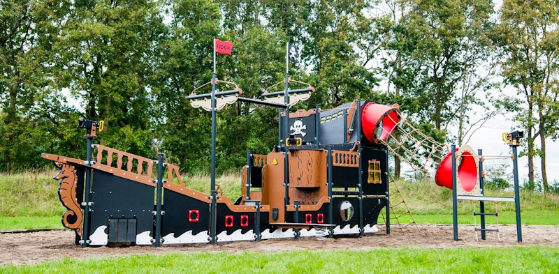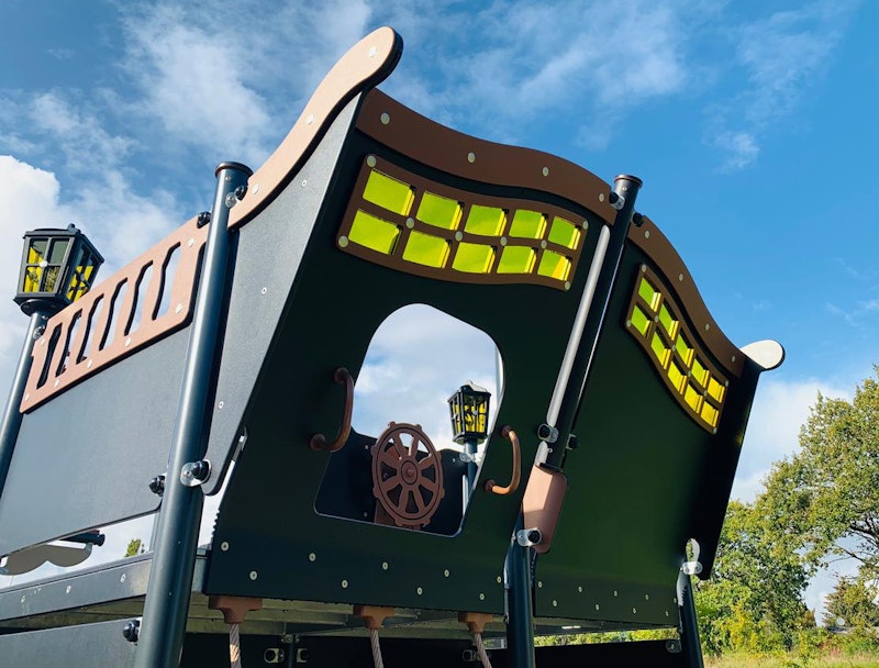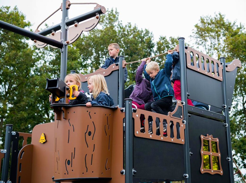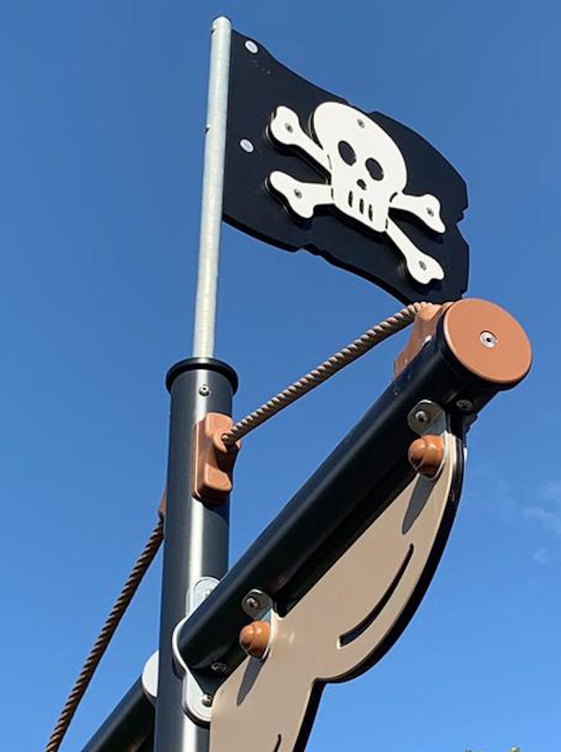 Ett piratskepp har siktats på en lekplats nära dig. Det är full kalabalik ombord! Diamantgömman är upptäckt. Någon måste ta ut en ny kurs mot nya äventyr! annars väntar plankan för förrädaren. Sällan har vi sett barnen försvinna så djupt in i leken som med vårt nya piratskepp! Grottor ska upptäckas. Krokodiler oskadliggöras. Hemligheter hållas! Vårt piratskepp är uppdelat i 4 olika lekzoner - förskepp. mittskepp, akterskepp, kabin - med lek för alla åldrar!