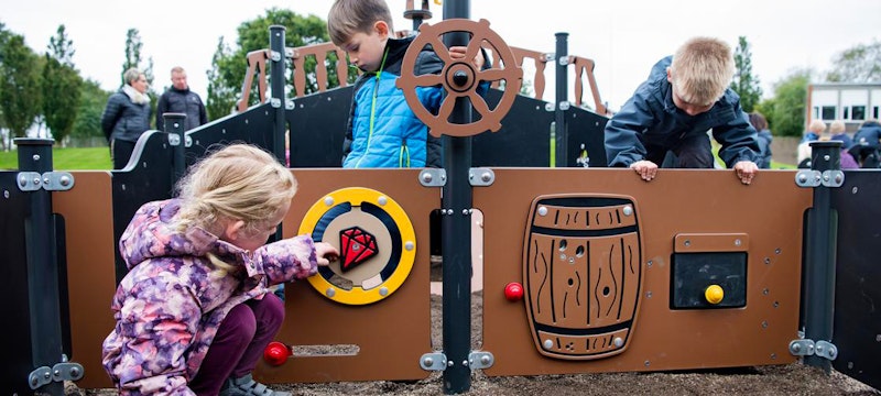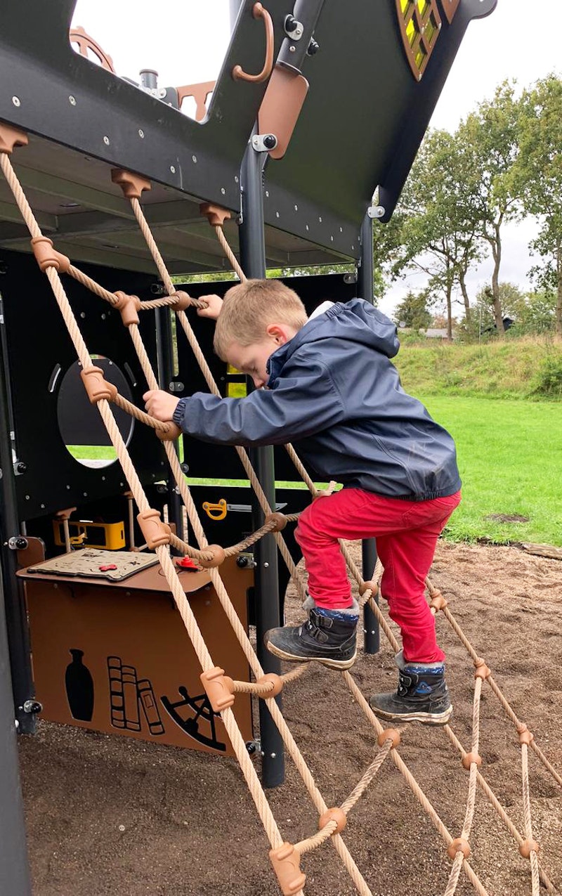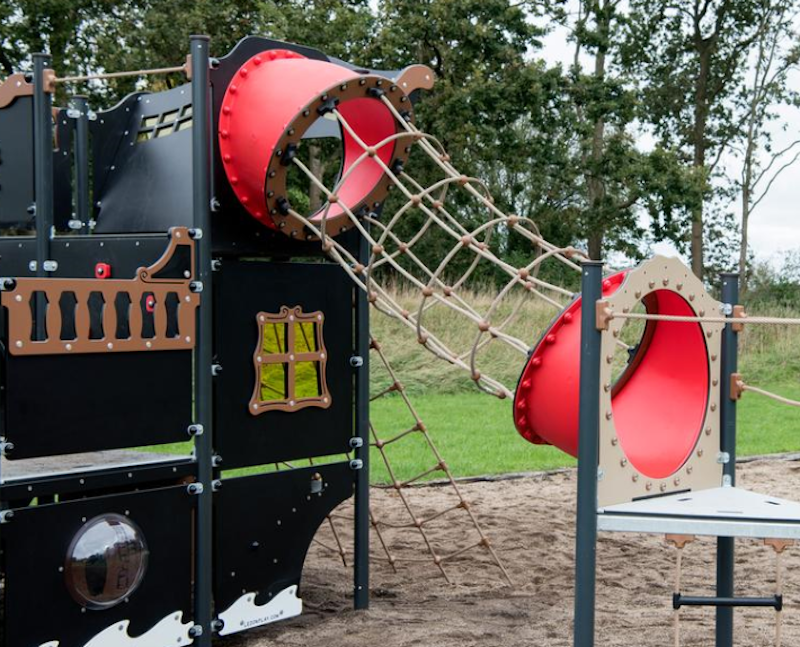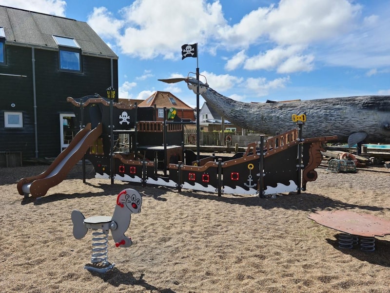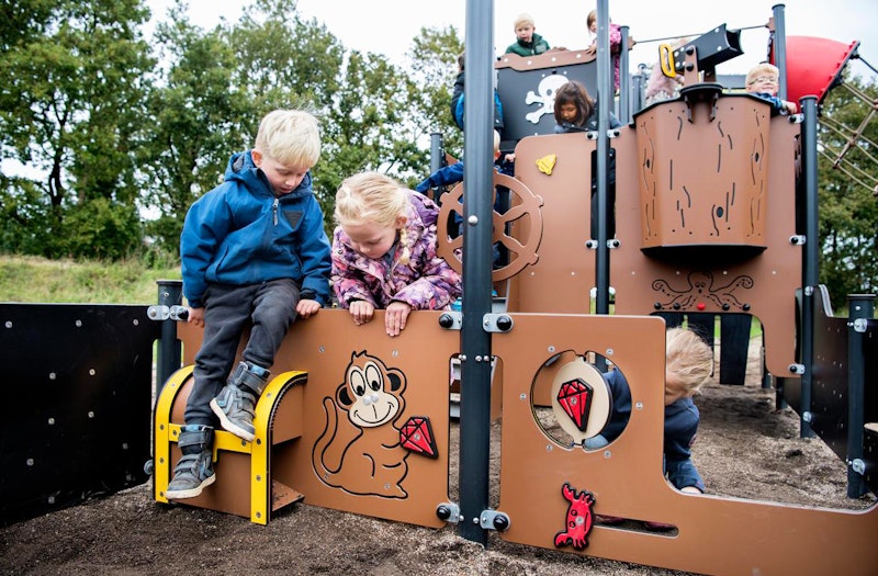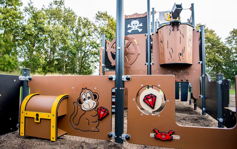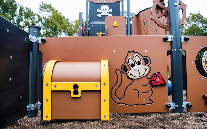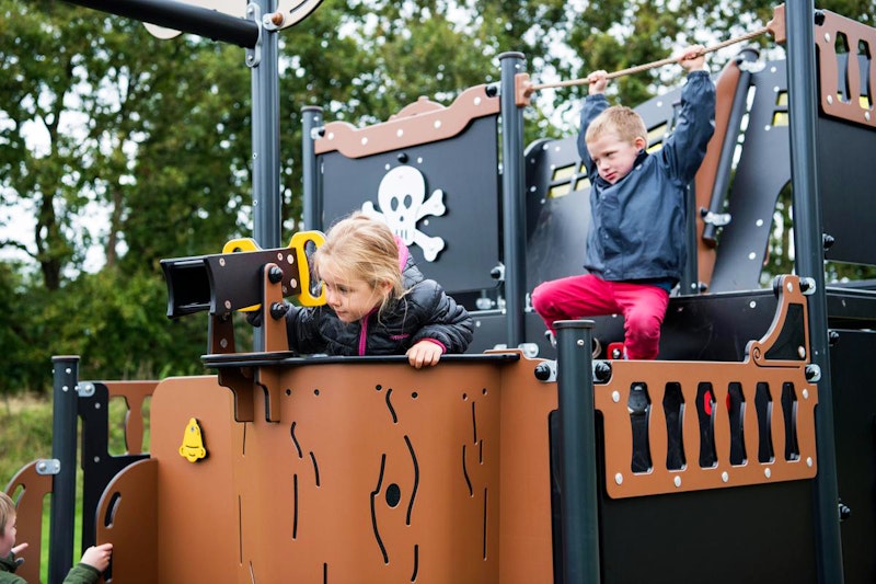 Ett piratskepp har siktats på en lekplats nära dig. Det är full kalabalik ombord! Diamantgömman är upptäckt. Någon måste ta ut en ny kurs mot nya äventyr! annars väntar plankan för förrädaren. Sällan har vi sett barnen försvinna så djupt in i leken som med vårt nya piratskepp! Grottor ska upptäckas. Krokodiler oskadliggöras. Hemligheter hållas! Vårt piratskepp är uppdelat i 4 olika lekzoner - förskepp. mittskepp, akterskepp, kabin - med lek för alla åldrar!