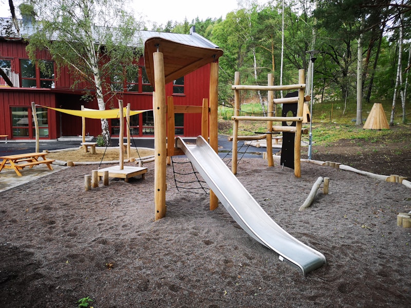 Naturliga lekmiljöer i trä. Hållbar lekplatsutrustning som smälter in i landskapet.