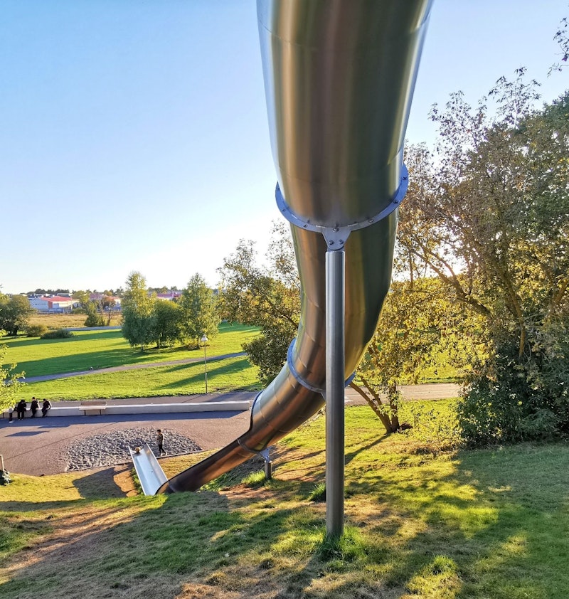 Våra rostfria rutschkanor används i projekt över hela Sverige. Rutschkanorna finns i olika längder och bredder och kan specialanpassas för ditt projekt. Här bilder från Mall of Scandinavia, Brotorget i Bollnäs, förskolor, skolor med mera.